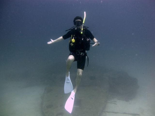 最終ダイビング前。余裕の表情。