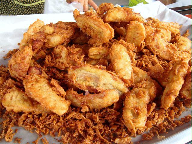 右:たまに種が気になるクルァイトーッ(バナナ揚げ)
