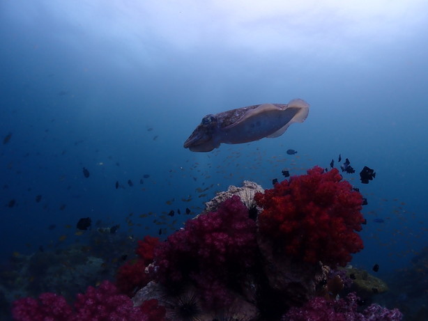 ラストのドクマイ島は、残念ながら強い流れとサーモクラインの濁りで写真は撮れず…。